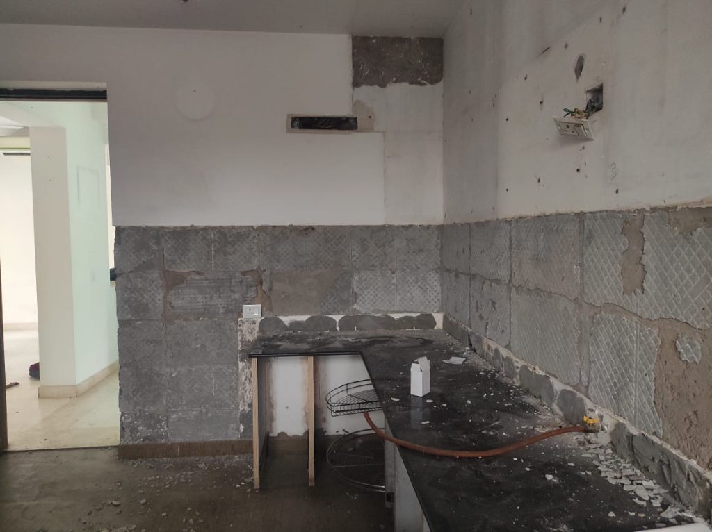 - Dado tiles were installed on the walls as per the kitchen furniture layout, blending practicality with aesthetics.