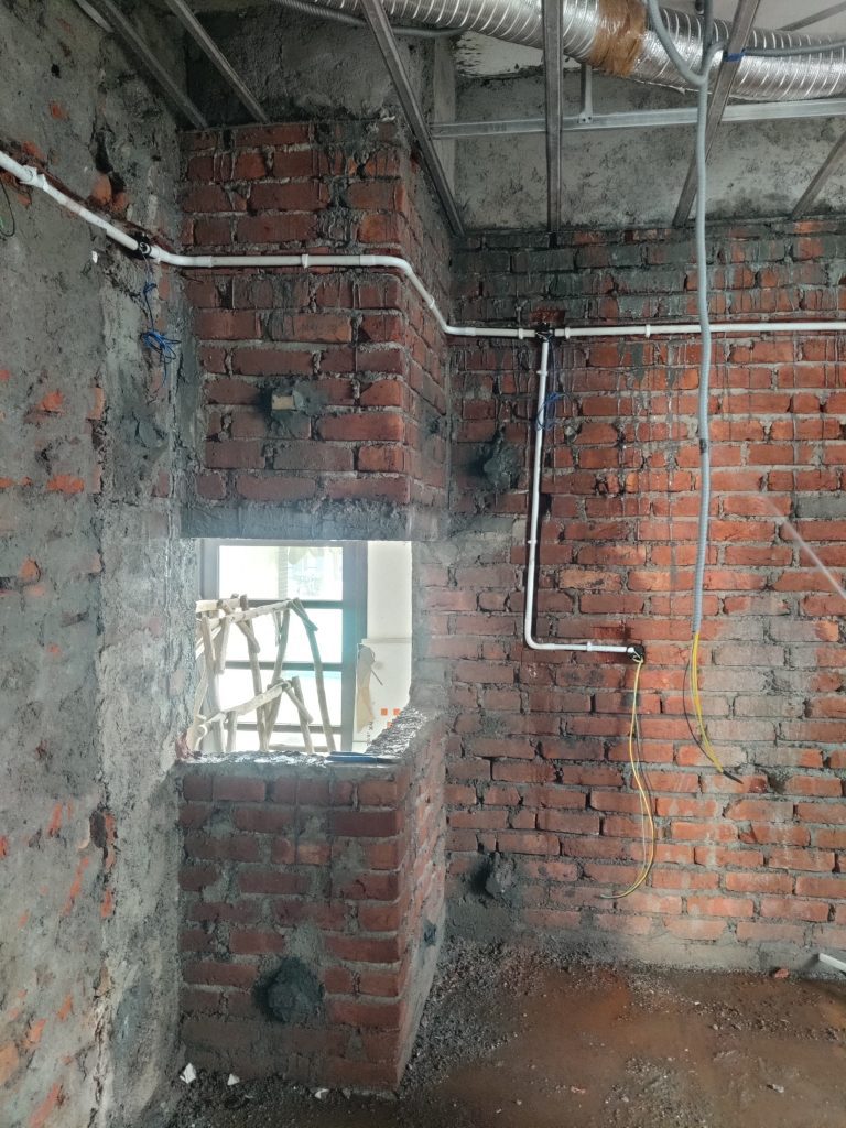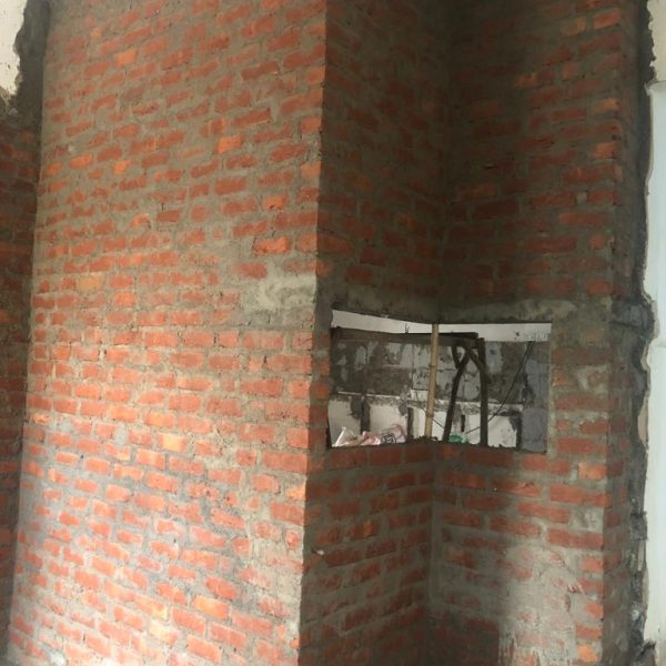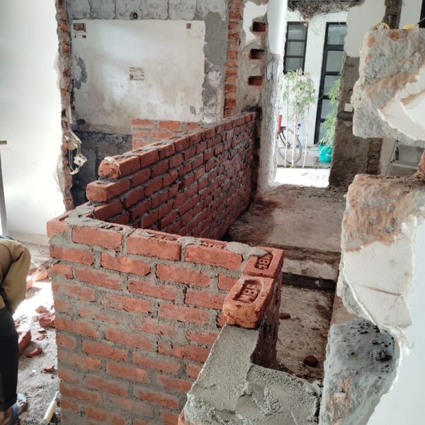 - Brickwork was completed to redefine the space and ensure a strong structure.