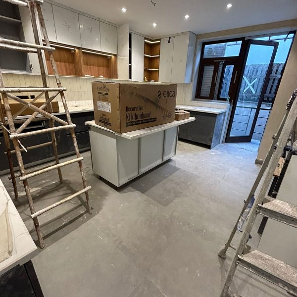 At this stage, the kitchen transformation was in full swing—the space was beginning to reflect its stunning new look.