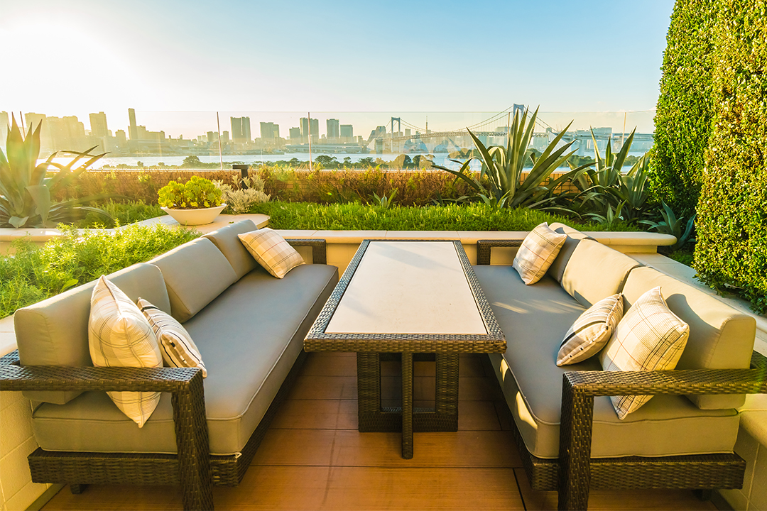 - Sectional outdoor sofas in neutral tones