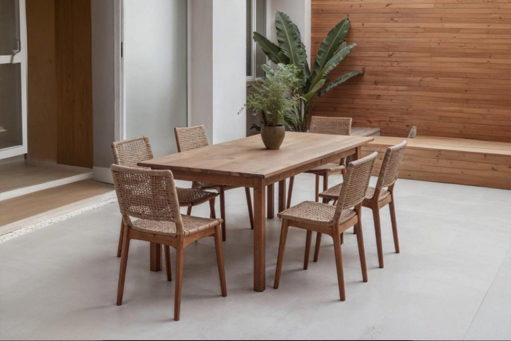 Stylish Outdoor Furniture Tip: Go for natural materials like rattan, teak, or cane that blend effortlessly with green surroundings.