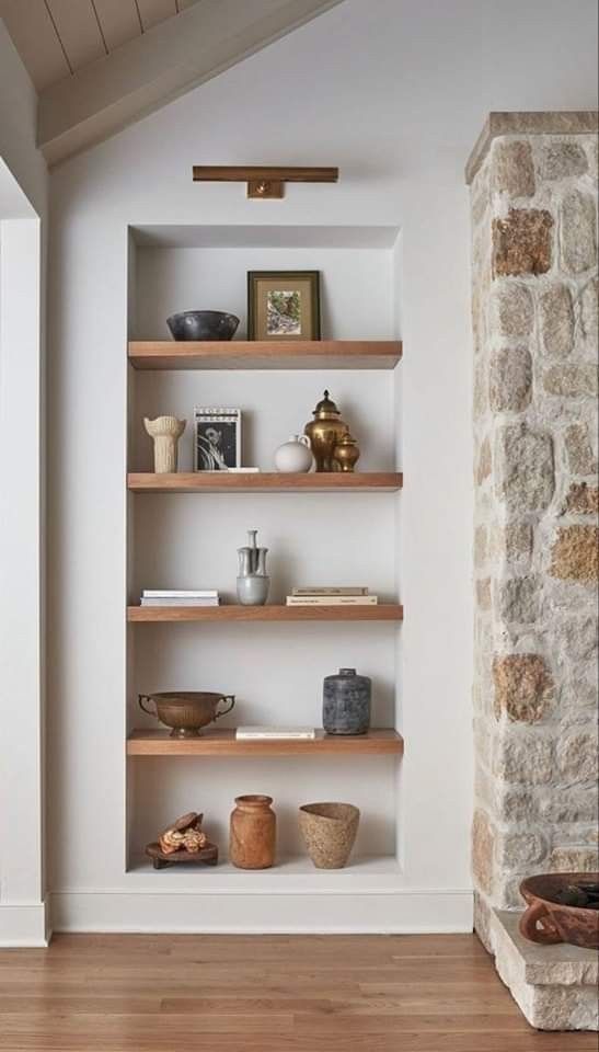 Niches are an architectural detail that’s both beautiful and practical. They sit flush within your wall and can hold books, decor, plants, or even act as bedside storage without encroaching into your space.