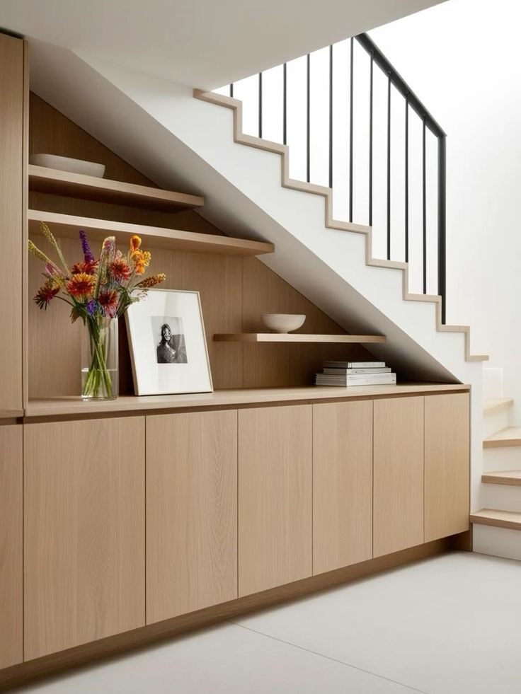 Tip: Use beds with storage underneath, slim pull-out racks beside your fridge, or hooks behind doors for coats or bags. Create storage wherever there’s an unused sliver of space — under the stairs, between cabinets, even in window seats.